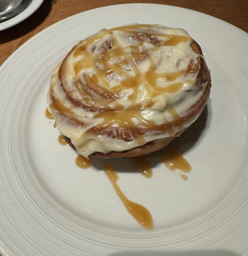 I’m a huge fan of cinnamon rolls, and when I placed my order, I was stunned by its size. Unlike other oversized cinnamon rolls that often resemble cake, this one was authentic. As my fork sliced through it, I immediately noticed the difference. Despite its impressive size, it was a true cinnamon roll. My taste buds rejoiced with the first bite, and I can confidently say it’s the best cinnamon roll I’ve ever had. The cream cheese frosting was the perfect finishing touch!